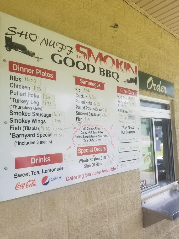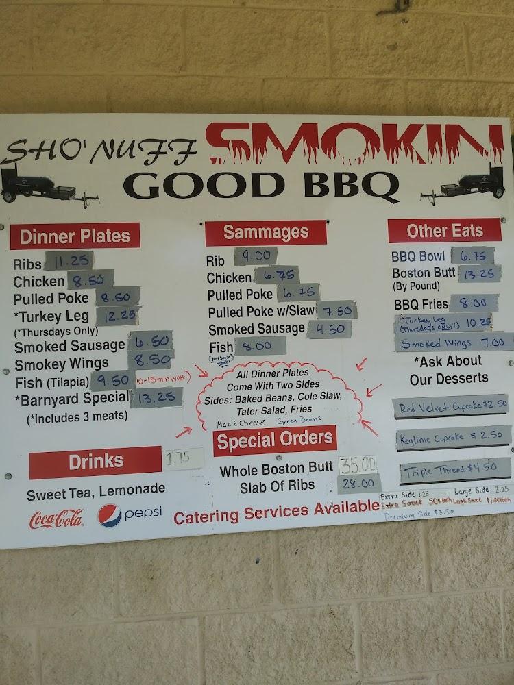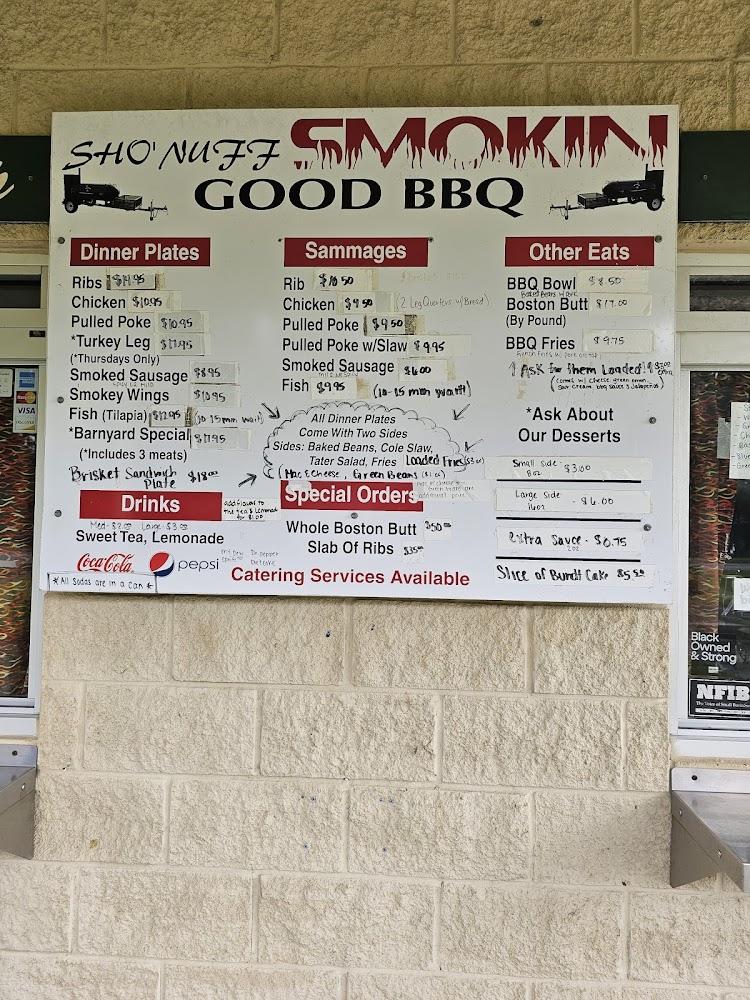 At Sho Nuff Smokin Good BBQ, the menu features a blend of classic Southern cuisine and BBQ staples. Expect to find an array of dishes that include ribs, pulled pork sandwiches, fried chicken, and specialty sides. Popular items like mac and cheese, cole slaw, and baked beans complement the main dishes perfectly.